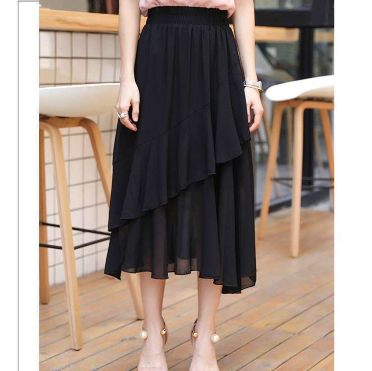 軽やかな素材感とアシンメトリーなフリルの配置が、エレガントな雰囲気を演出します。